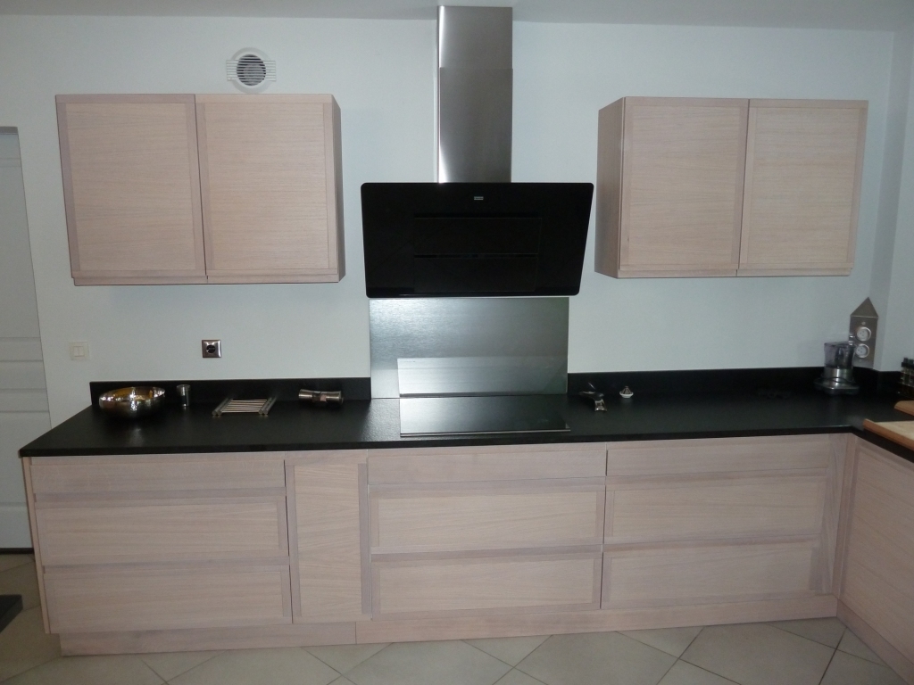 cuisine :portes avec prise de main intégré et amortisseur sur les charnières pour la fermeture