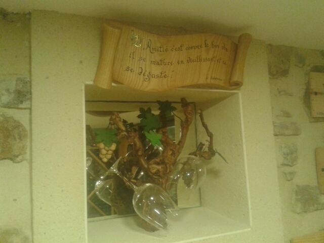 création et décoration bois :un porte verre avec un sarment de vigne et ses feuilles et ses grappes de raisin (artisan ébéniste 64)